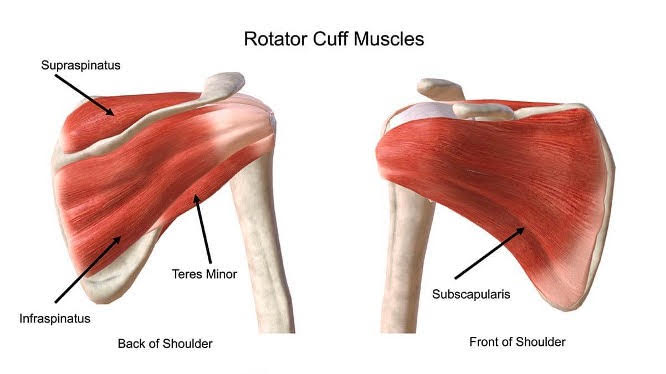 The shoulder is a ball and socket joint and the rotator cuff are responsible for moving the arm up and rotating the arm at the shoulder. Another important role of the rotator cuff is to stabilise the ball in the socket at the shoulder. If the rotator cuff muscles are weak (because they are damaged), the ball of the shoulder migrates upwards as we lift the arm, causing impingement against the bony roof of the shoulder, causing further damage to the shoulder. This is the cause of the majority of shoulder pain.